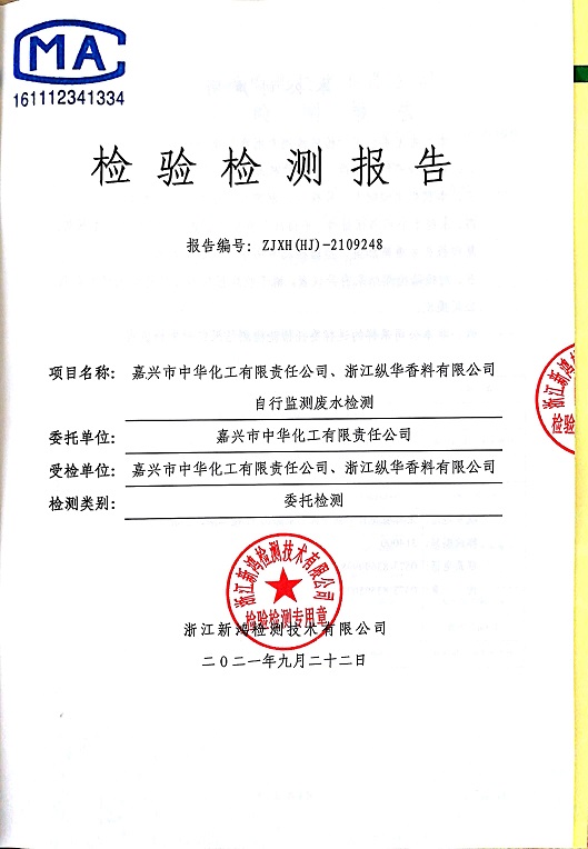 報(bào)告名稱:中華化工、縱華、豐杰3、4季度廢水檢測(cè)報(bào)告