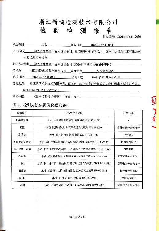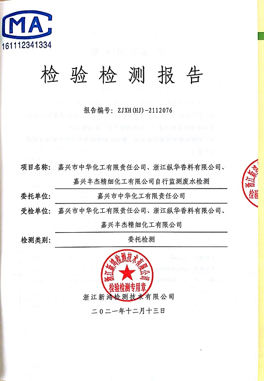 - 中華化工4季度檢測(cè)報(bào)告