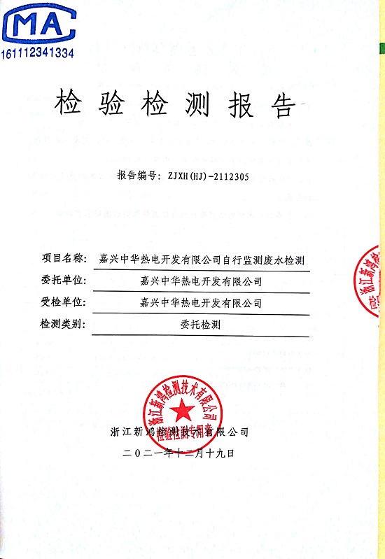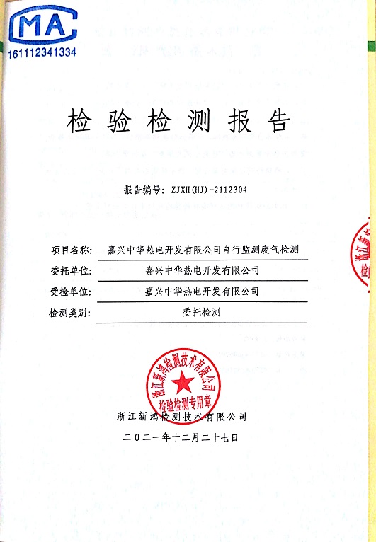 報告名稱:中華熱電12月廢氣、廢水、4季度噪聲檢測報告