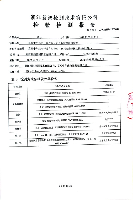 報(bào)告名稱:中華熱電2022.2月廢水檢測(cè)報(bào)告