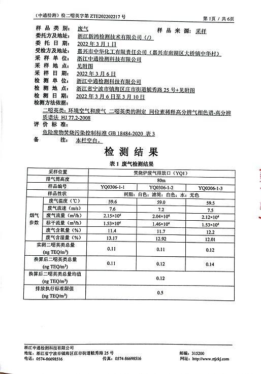報(bào)告名稱:中華化工上半年二噁英檢測(cè)報(bào)告