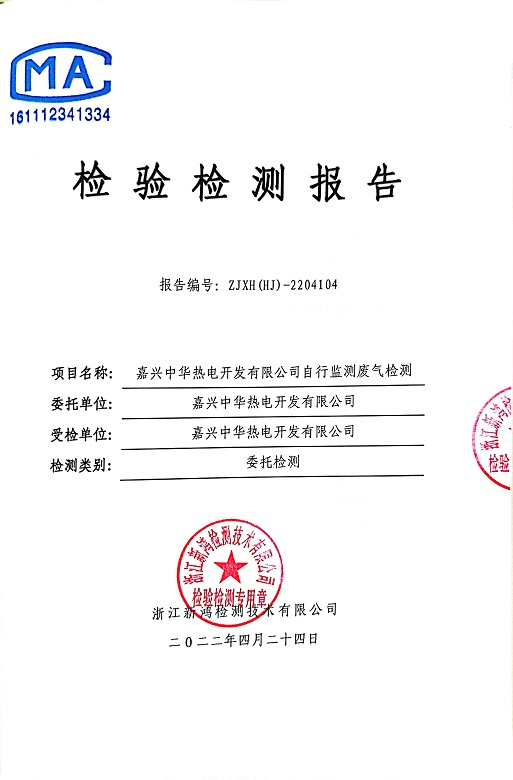 報(bào)告名稱:中華熱電2022.4月廢氣檢測(cè)報(bào)告