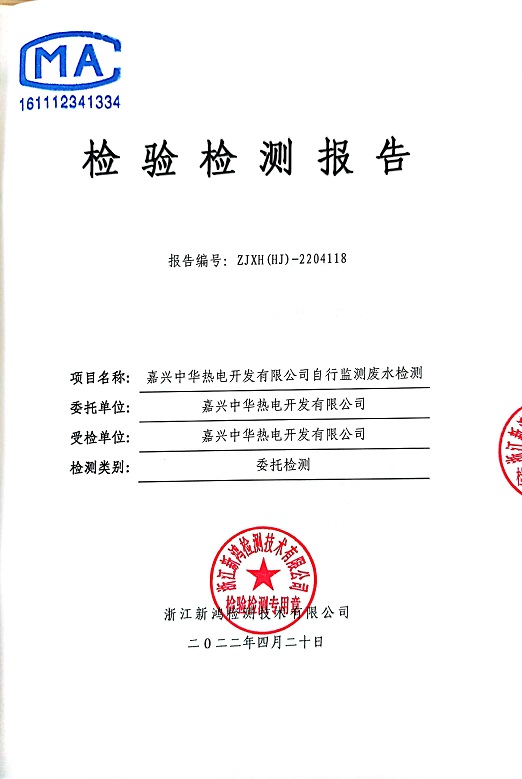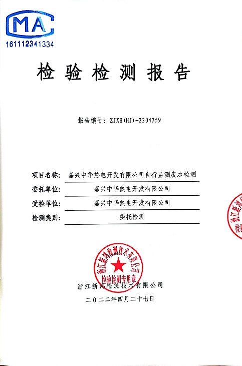 報告名稱:中華熱電2022.4月廢水檢測報告