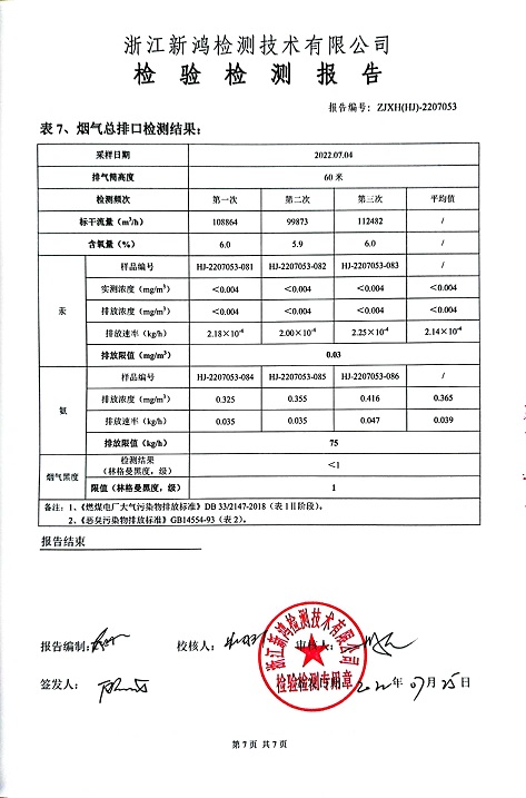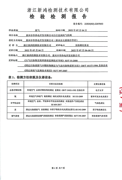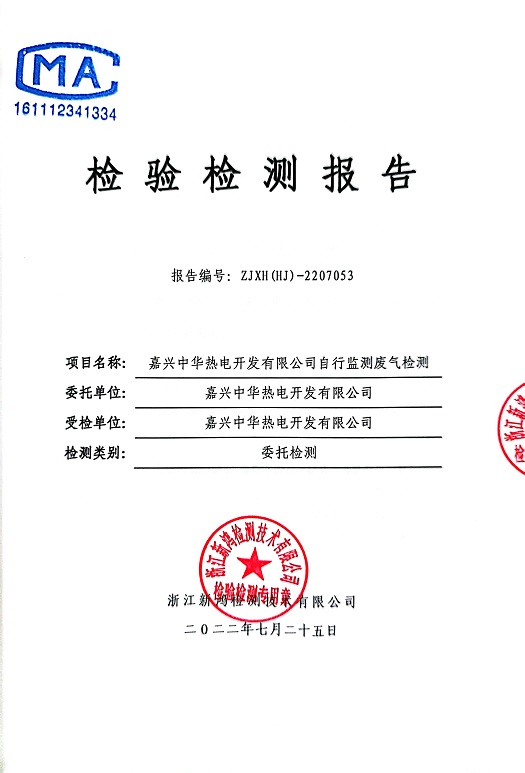 報告名稱:中華熱電2022年7月廢氣檢測報告