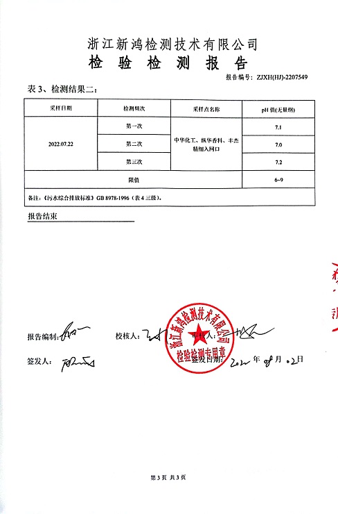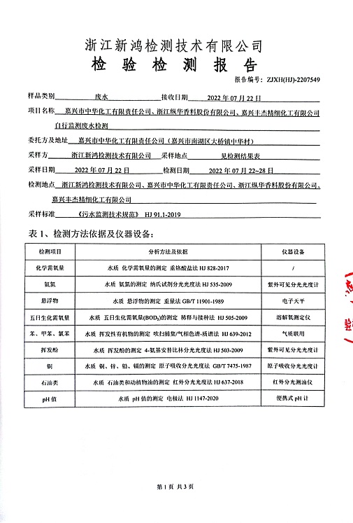 報(bào)告名稱:中華化工、縱華、豐杰2022年3季度廢水檢測報(bào)告