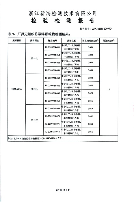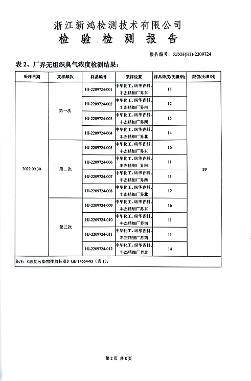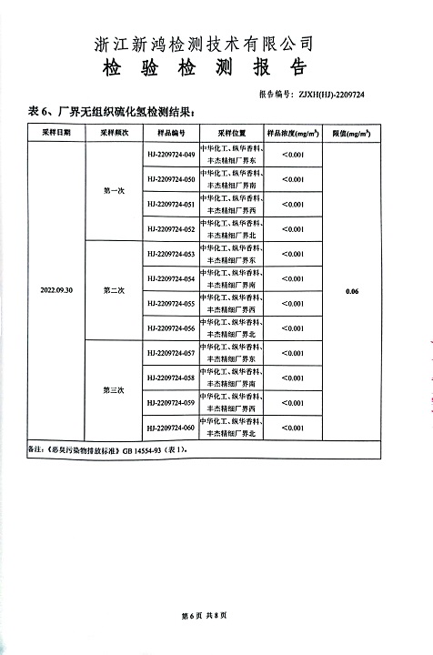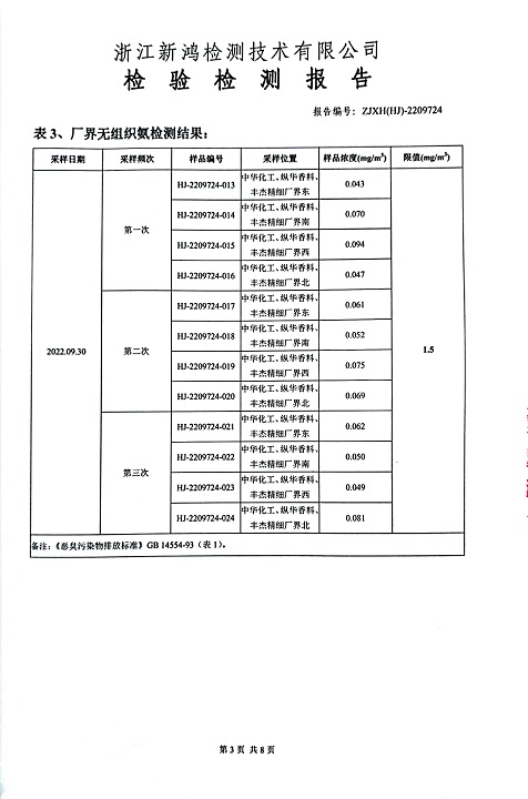 報(bào)告名稱:中華化工、縱華、豐杰2022年3季度廠界檢測報(bào)告
