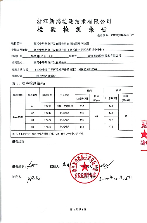 報(bào)告名稱:中華熱電2022年4季度噪聲檢測報(bào)告