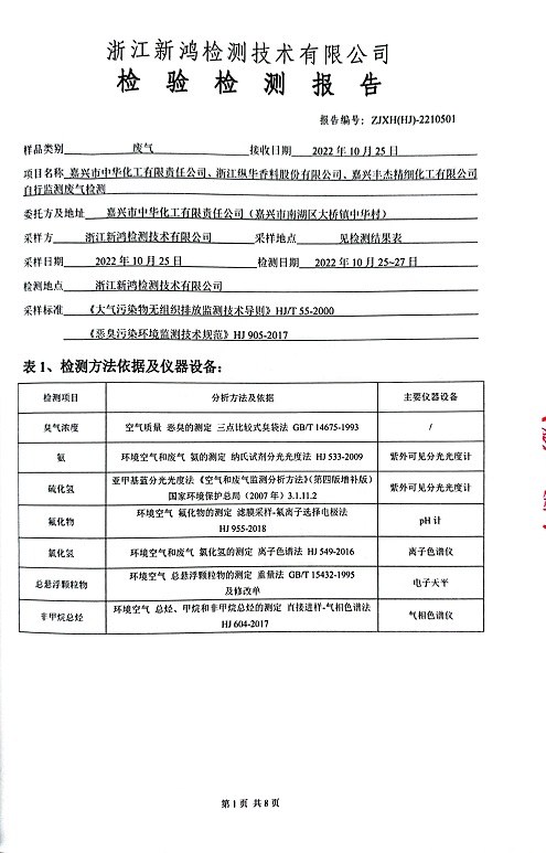 報告名稱:中華化工、縱華、豐杰2022年4季度廠界檢測報告