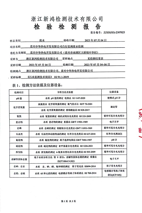 報告名稱:中華熱電2023.7廢水檢測報告
