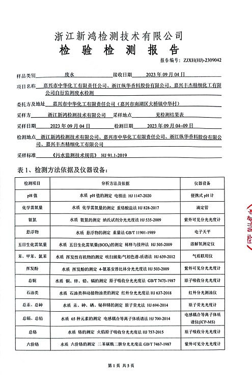 報(bào)告名稱:中華化工、縱華、豐杰2023.3季度廢水檢測報(bào)告