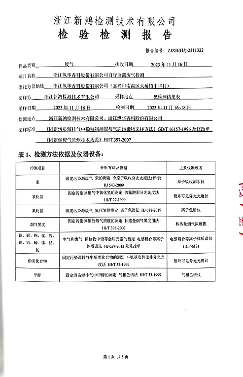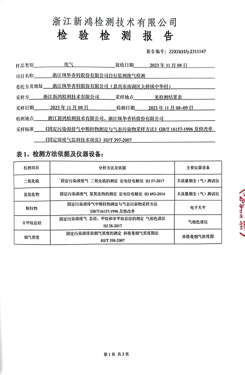 報(bào)告名稱:縱華2023.11月廢氣檢測(cè)報(bào)告