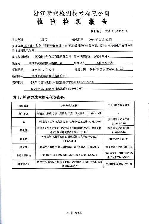 報告名稱:2024年中華化工1季度廠界檢測報告