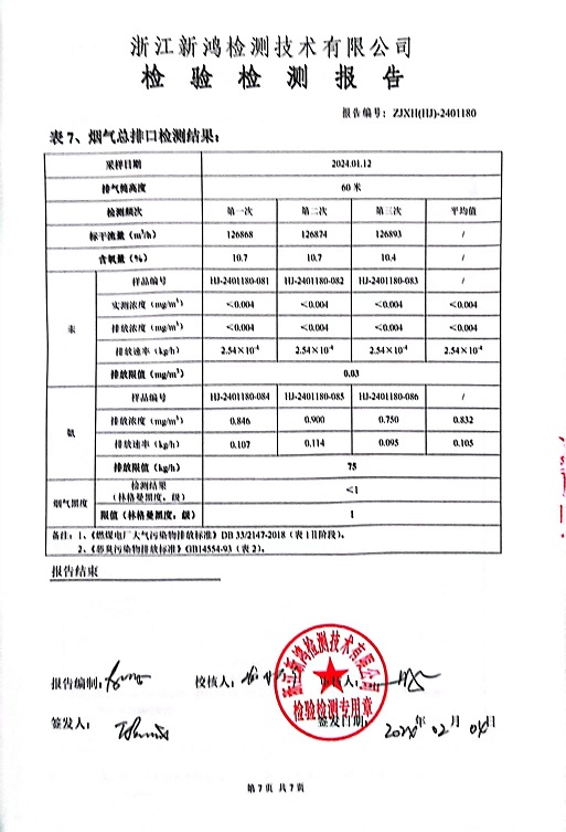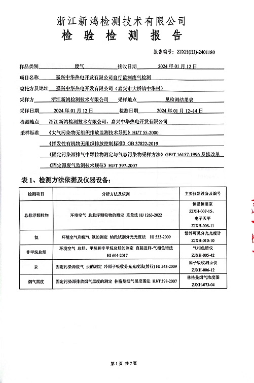 報告名稱:2024年中華熱電1月廢氣檢測報告