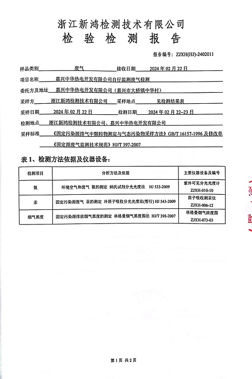 報(bào)告名稱:2024年中華熱電2月廢氣檢測(cè)報(bào)告