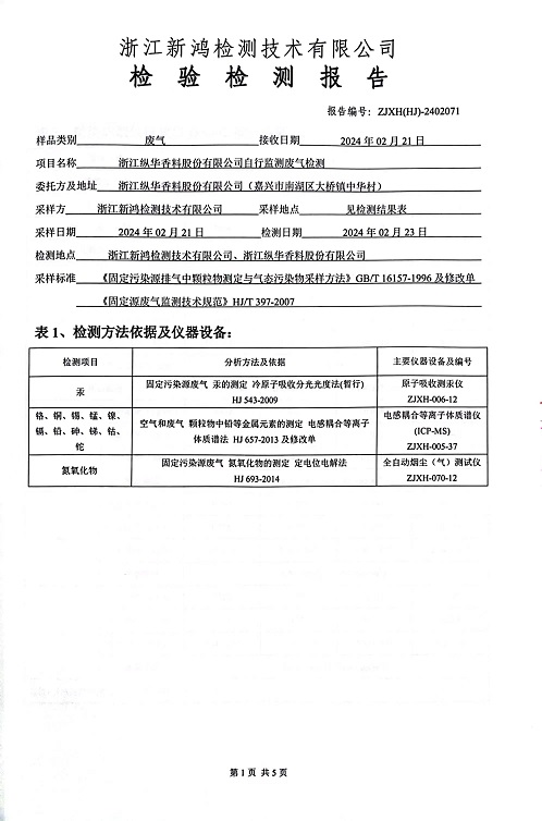報(bào)告名稱:2024年縱華2月廢氣檢測(cè)報(bào)告