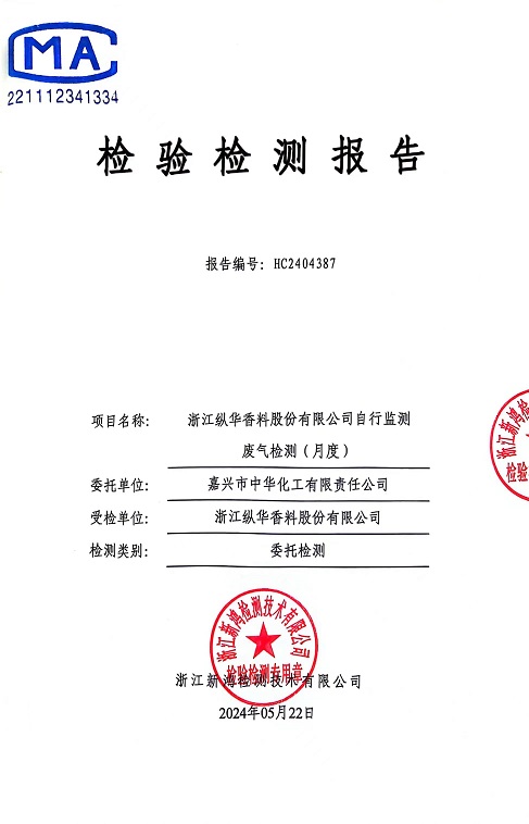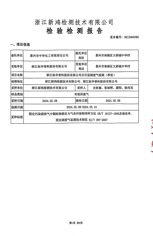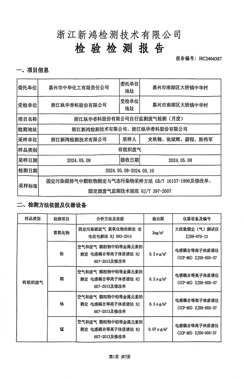 報(bào)告名稱(chēng):2024年縱華5月廢氣檢測(cè)報(bào)告