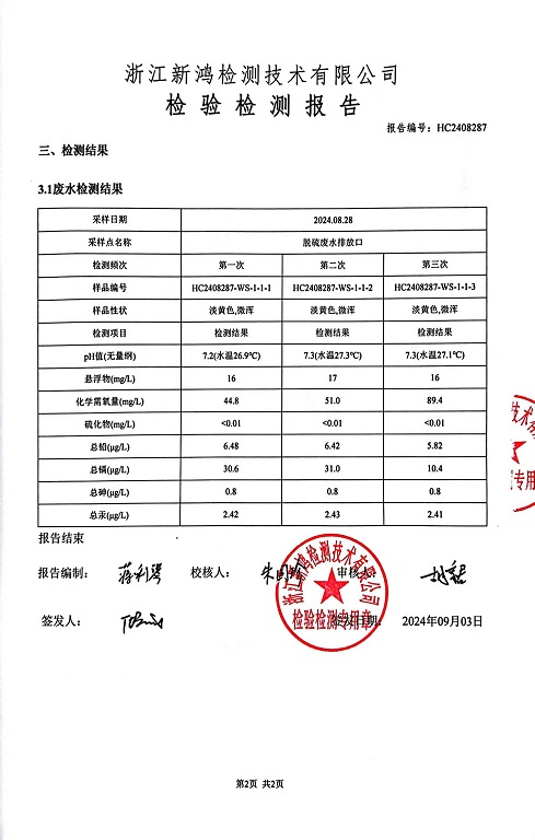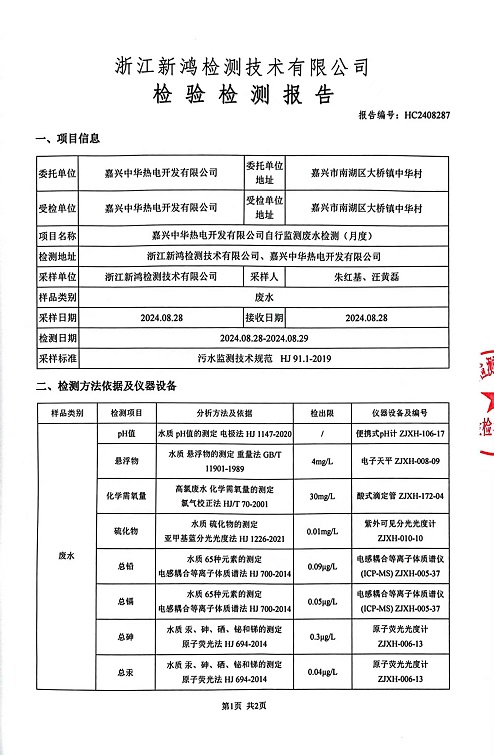 報(bào)告名稱:中華熱電8月廢水檢測報(bào)告
