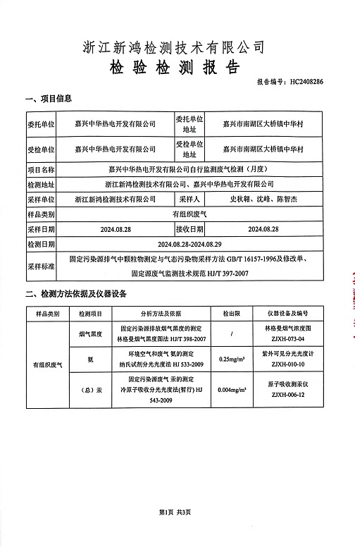 報告名稱:中華熱電8月廢氣檢測報告