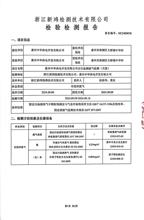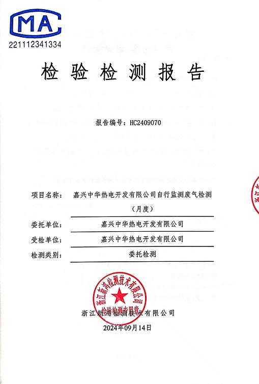 - 中華熱電9月廢氣檢測報(bào)告