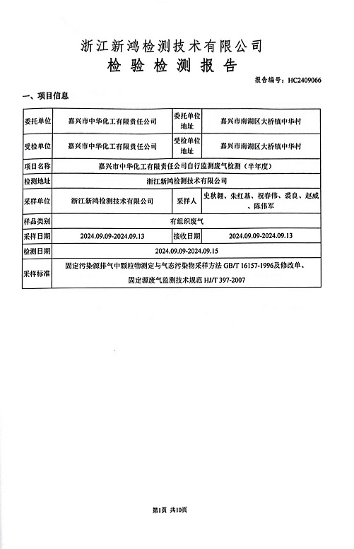 - 中華化工4季度檢測報(bào)告