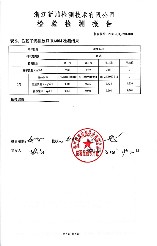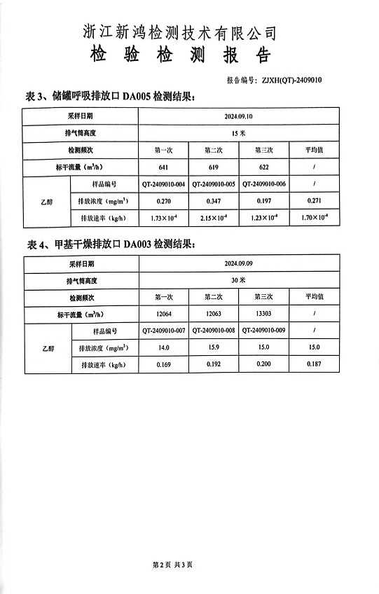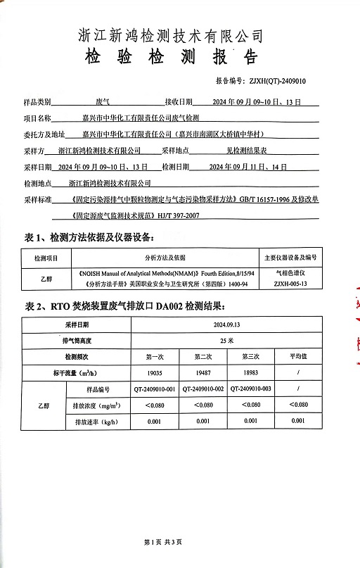 報告名稱:中華化工下半年乙醇檢測報告