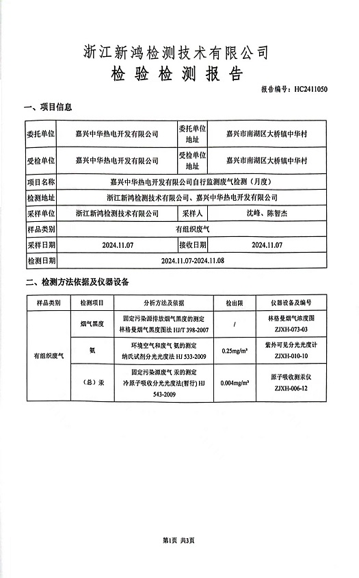 - 中華熱電11月廢氣檢測(cè)報(bào)告