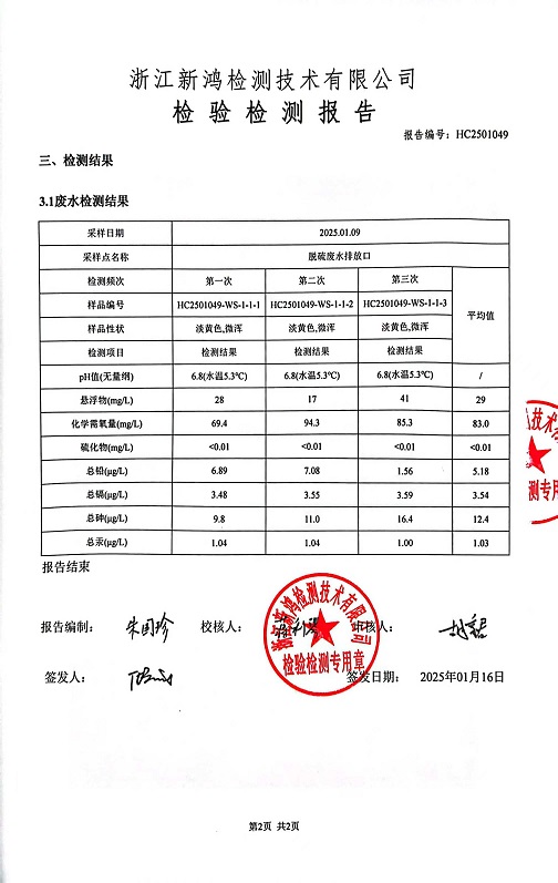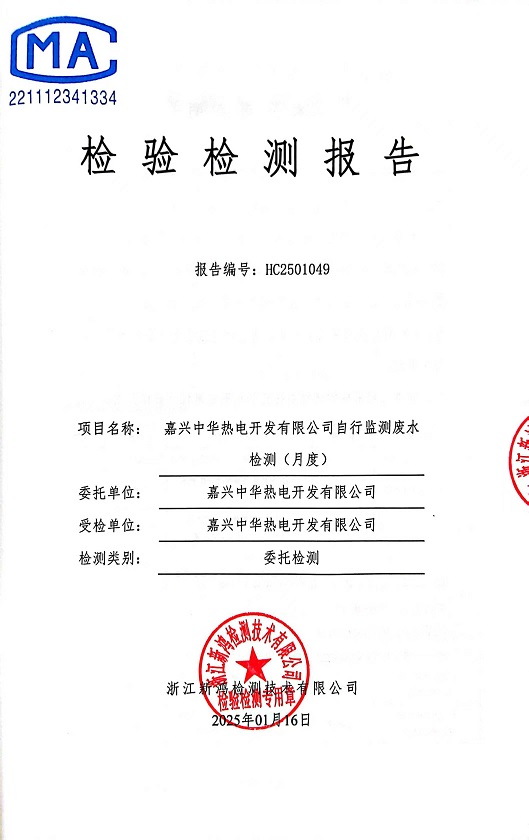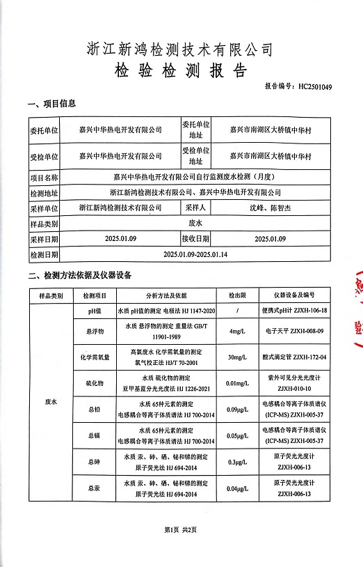 報告名稱:中華熱電2025年1月廢水檢測報告