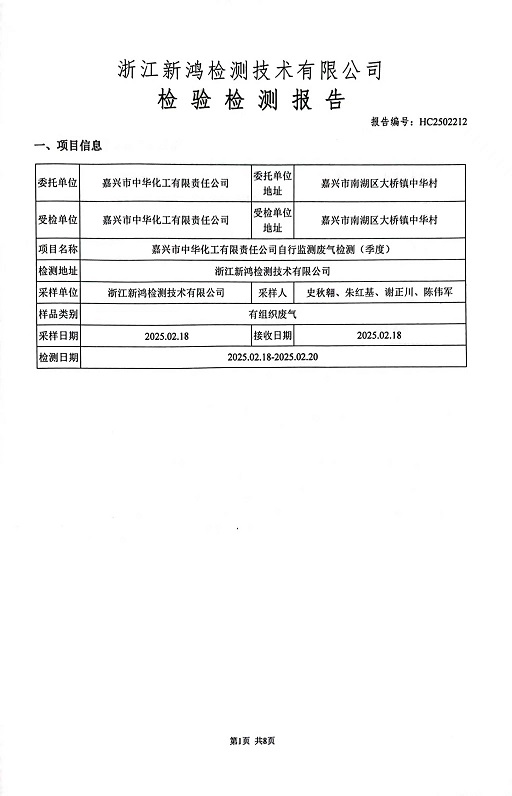 報(bào)告名稱(chēng):中華化工2025年1季度廢氣檢測(cè)報(bào)告