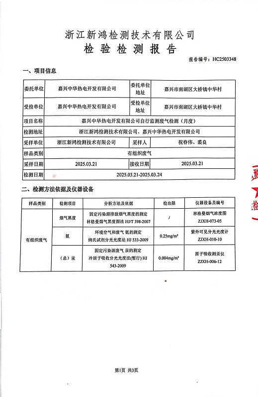 報(bào)告名稱:中華熱電3月廢氣檢測報(bào)告