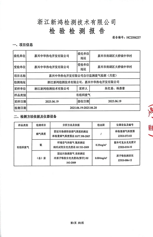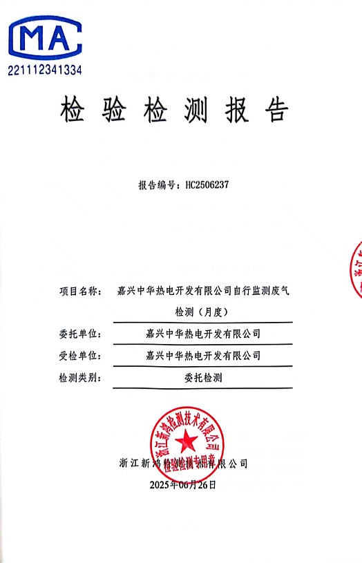 報(bào)告名稱:中華熱電6月廢氣檢測報(bào)告