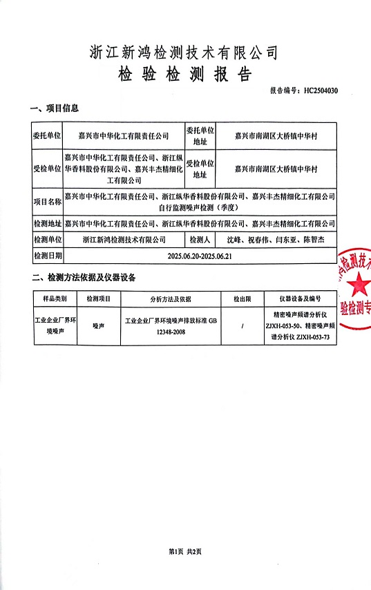 - 中華化工3季度噪聲檢測(cè)報(bào)告