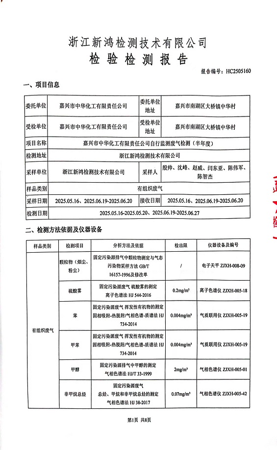 報告名稱:中華化工上半年廢氣檢測報告