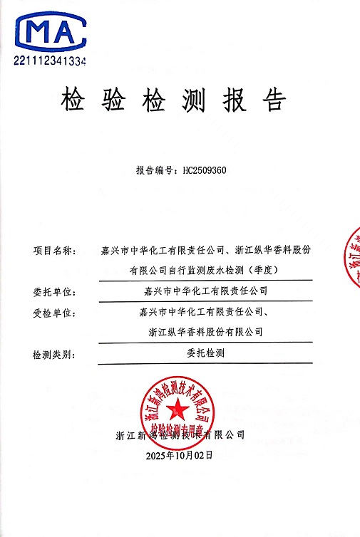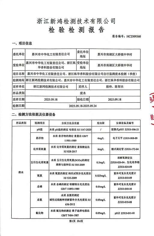 報告名稱:中華化工3季度廢水檢測報告