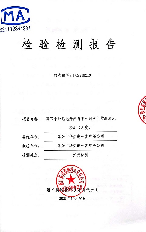報(bào)告名稱:中華熱電10月廢水檢測報(bào)告